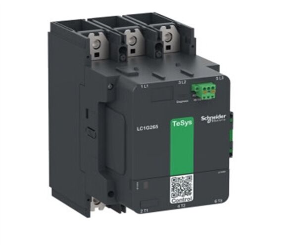 TeSys Giga Hochleistungsschütz, 3-polig (3 Schließer) für Kategorie AC-3-Anwendungen bis zu 150A 90kW@440V. Es bietet eine elektronische Spule mit weitem Bereich von 100-250V AC/DC, geringem Verbrauch und einen eingebetteten, hochzuverlässigen Hilfskontaktblock 1NO+1NC (17V 1mA). Entwickelt für anspruchsvolle Anwendungen mit maximalen Schaltfrequenzen von bis zu 600 Zyklen pro Stunde und Umgebungen bis zu 60°C. Es bietet hohe Zuverlässigkeit und Haltbarkeit mit 5 Mcycles mechanischer Lebensdauer. Lokale Kontaktverschleißdiagnose (CWD) als Standardfunktion, kontinuierliche Überwachung mit Gut- und Alarmanzeigen. Es besteht die Möglichkeit, das Schaltmodul (Hauptkontakte) auszutauschen, wodurch die Lebensdauer des Schützes verlängert wird. Der Schütz kann in allen Quadranten befestigt werden, Wartung ohne Entfernen von Kabeln/Sammelschienen, und OLR kann direkt unter dem Schütz montiert werden. Zur Verwendung mit Stromanschluss durch Schraubverbindung und Steueranschlüssen durch Federklemmen, von vorne zugänglich für einfachen und schnellen Austausch. Es bietet IP2x-Schutz an der Vorderseite mit Abdeckungen gemäß IEC 60529 und VDE 0106. Es kann -25°C bis 60°C Betriebsumgebungstemperatur abdecken und direkt auf einer Platte montiert werden, keine Reduzierung bis zu 3000 m Höhe. Die Abmessung beträgt 255 mm x 108 mm x 175 mm (H x B x T), die kompakte Größe ermöglicht Platzersparnis im Schaltschrank. Mehrfach zertifiziert (CE, CB, CCC, cULus, EAC, KC, RCM, Marine) und Green Premium konform (RoHs/Reach). Ein eindeutiger QR-Code bietet schnellen Zugriff auf vollständige Produktdaten.